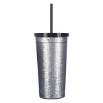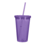 - Screw on, spill-resistant thumb-slide lid with matching 9" straw